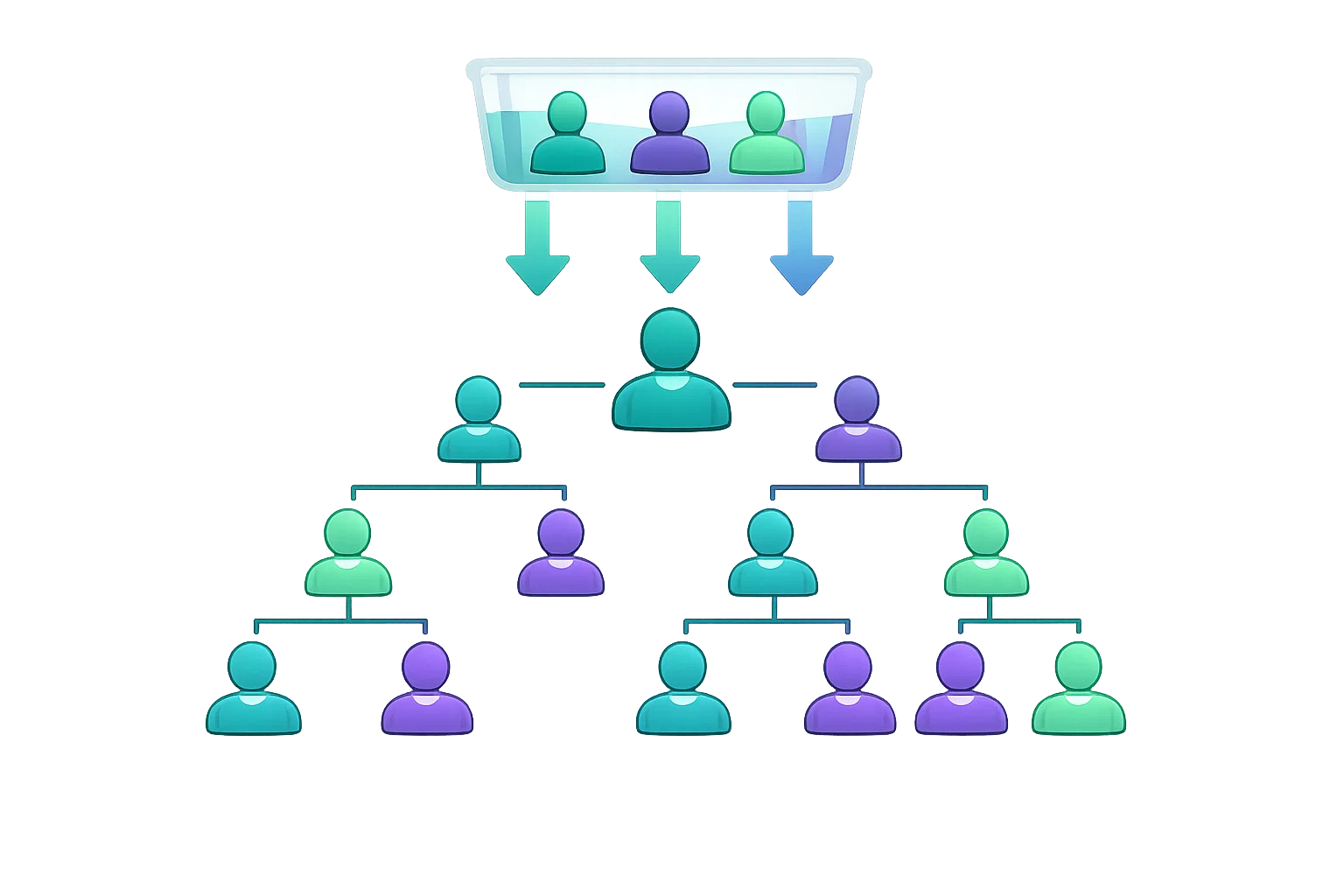 Business admins can configure auto-balanced spillover preferences, allowing the system to automatically place members in the genealogy tree. Members are filled from left to right, top to bottom, ensuring a balanced network structure.